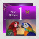 HYPER PARROTS /First Birthday Party Purple Invitation