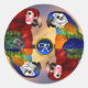 HYPER PARROTS /RED AND BLUE ARA GEMSTONE MONOGRAM CLASSIC ROUND STICKER