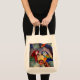 The printing came out very well, better than I had anticipated. The natural color fabric is sturdy with strong seams and comfortable handles. This tote fits easily over my shoulder. As it is filled, the bottom flattens out--very cool! I would buy this product again. This grocery tote holds a lot of groceries! The image quality was very good. The colors were a little darker than I had expected. The darkness may have been due to printing on a natural color fabric rather than on white. The cat design is attractively centered on the tote. The spirit of the design is very lively, just as it appears on the Zazzle website.