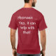 A shirt for people that enjoy hypnosis. The front features a hypnotized with the words "Hypno-Junkie" above it. The back of the shirt states: "Hypnosis ... yep, it can help with that!". This shirt was inspired by my wife who has wanted her very own hypnosis shirt for some time.
