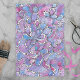 This tissue paper is a visual delight, a canvas of vibrant hues and intricate patterns. The design is a symphony of rich purples, blues, and pinks, swirling together in an elegant dance. The pattern is complex, with lines creating flower-like shapes and abstract forms, making each glance a new discovery. Strategically placed white dots add contrast and depth, enhancing the overall visual appeal. The design is harmonious yet dynamic, drawing the eye without overwhelming it.