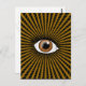 illustration of brown eye with dark golden sun rays beaming straight out and in swirl pattern against a black background. Talisman for self-hypnosis.
