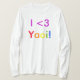 I love this shirt. I had written to the artist asking her if this picture was available on a shirt, and she wrote me back telling me where I could find the shirt. These shirts can be custom made to have a different saying. I loved this saying and went with it. The artist wrote me back later to tell me that she had seen my order go through. How's that for service? Pretty special. It's just as displayed. Perfect!