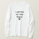 I love this shirt. I had written to the artist asking her if this picture was available on a shirt, and she wrote me back telling me where I could find the shirt. These shirts can be custom made to have a different saying. I loved this saying and went with it. The artist wrote me back later to tell me that she had seen my order go through. How's that for service? Pretty special. It's just as displayed. Perfect!