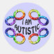 I Am Autistic text surrounded by rainbow Spectrum ribbons. Autism awareness/ autistic activism.