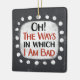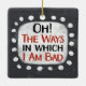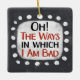 A fun typographic design that says "Oh! The Ways In Which I Am Bad". It's black and red text on a white rectangle with funky, playful white dots surrounding it, all on a gray background.