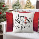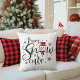This fun and festive pillow features the words "I am Snow Cute" in black decorative script with a cute little snowman wearing a red and black buffalo checked top hat and scarf.