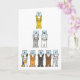 Three rows of cartoon cats standing up on their back paws. The cats are holding up pastel blue colored cards which have letters on that spell out' I am sorry'.