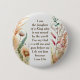 Button depicts a beautiful floral art design with green and tan Boho flowers. It features an encouraging Christian faith quote, "I am the daughter of a King who is not moved by the world For my God is with me and goes before me I do not fear because I am His"