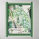 Scripture art features this Bible quote from John 15:5: “I am the vine, ye are the branches: He that abideth in me, and I in him, the same bringeth forth much fruit: for without me ye can do nothing.” Photo features closeup of a cluster of green grapes framed digitally with a gradient fill. Artwork by Cheryl Rogers.