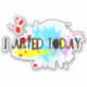 I Arted Today funny artistic pun with colorful paint splashes, brush marks, and line drawing. Offered here on a contour sticker in several size options. It's a fun design for any artist or creative person!