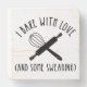 I Bake With Love (And Some Swearing). This funny quote baking accessory is a great gift for a man or woman who loves to bake in the kitchen. Also perfect for a baker or a bakery worker. If you're a home baker, love the culinary arts, and love to prepare delicious bread, cookies, muffins, cakes or cupcakes in the oven, then this humorous design is for you.