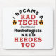This funny rad tech novelty design is perfect for a radiology technician, radiologic tech, or for an x-ray or MRI operator. The artwork features a radiation symbol and says: "I became a rad tech because radiologists need heroes too."
