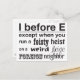 I before e. Except when you run a feisty heist of a weird beige foreigner.