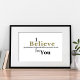 Life is hard, and sometimes just knowing that one person believes in you can make all the difference in the world. The simple yet powerful sentiment displayed in this print makes for a beautiful gift but also serves as a reminder that you, as much as anyone, deserve to have your support. When you believe in yourself, it’s okay not to have all the answers; you trust that if you just keep moving forward, you will either find a way or make one. Suitable for any décor, add a classic frame and place this print where you’ll see it every day and it will provide a boost of encouragement when you need it most.
