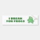 Bumper sticker with "I BRAKE FOR FROGS" written in matching green text. With a picture of a cute frog.