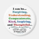 I can be Forgiving, Understanding, Compassionate, Kind, Inspiring, and Thoughtful, but it's not one of those days. Funny sarcastic saying.