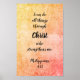 Encourage others or yourself with this attractive I Can Do All Things Through Christ Bible scripture poster. Save on top of today's sale price with Zazzle Black's free shipping. Visa, MasterCard, PayPal and American Express accepted. Design compilation copyright Laurie Bethard, DBA In Faith. You're invited to follow and/or bookmark our store front page so you won't miss any of our new items. Thank you for shopping, and have a great day!