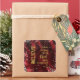 Red with gold typography/calligraphy. Faux glitter edges.