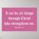 Custom poster featuring Philippians 4:13 Scripture quote 'I can do all things through Christ Who strengthens me.' Order as shown or customize with your own text and / or images.