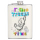 This small flask is really cute. Good for taking water or other liquids with you. My only complaint is the top is somewhat difficult to get back on after you screw it off. The printing is really good on the flask. My design came out just right!