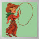 Cute retro illustration of a little boy in cowboy outfit twirling a lasso
