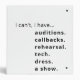 I can't, I have: auditions, callbacks, rehearsal, tech, dress, a show.
