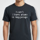 I can't. I have plans in my garage. T-Shirt