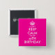 Neon pink i can't keep calm birthday badge pin button for women and teen girls. Create your own funny Keep calm and carry on parody for Birthday party celebrations. Vintage typography template with crown. Customizable background color. Add your own age. Fun for 16th, 21st, 30th, 40th, 50th Birthday gathering. Square or round shape.