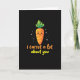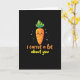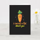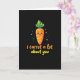 This greeting card shows a bright orange carrot character on a solid black background, with big wide eyes and a gentle smile that feels sweet and friendly ❤️. The carrot has a leafy green top that fans out like hair, adding a fun touch without taking away from the simple look. Small white sparkles float around it, making the scene feel a little magical and romantic 💘. The strong dark background makes the orange and green colors stand out clearly. Near the bottom, the card reads “i carrot a lot about you,” using casual, handwritten-style lettering. The words “i carrot a lot” appear in orange, and “about you” switches to yellow, so the message is easy to spot and feels extra warm 😘. Overall, it’s a cute pun with a happy character that fits a Valentine’s Day theme. Hope it helps you share your Valentine’s Day feelings with someone you care about.