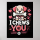 Puppy love just got even cuter! This "I Chews You" design features a lovable puppy holding a bone, surrounded by hearts and paw prints, creating a sweet and playful vibe. Perfect for dog enthusiasts, pet parents, or anyone with a soft spot for adorable puns, this design celebrates love with a touch of canine charm. Whether it's for Valentine's Day or just to express affection, this design will have everyone barking up the love tree! Makes an adorable gift for couples, singles, or anyone who loves dogs and cute designs. A paw-sitively perfect choice for Valentine's Day, anniversaries, or birthdays!