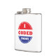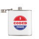 Well made flask, a little better than I had expected. Flask came in clear plastic box which gave it a nice presentation when I took it out of the zazzle packaging. Image is not printed on flask but on sticker. Don't know how this will hold up I haven't used it yet. This would make a Great gift! I plan to purchase more for friends! Cheers. I thought a little brighter than computer. Very crisp, writing wasn't