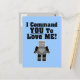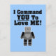 Who could resist this adorable bot? This funny geek robot design features the hilarious message "I Command You To Love Me!" with a cute and demanding angry geek robot with a silver heart! This robot humor design is the perfect gift to buy for your significant other on valentine's day or any other romantic occasion.