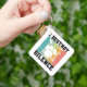 The key chain is made of metal and really sturdy. The flower design is really cheerful. The logo and colors are clear and crisp!