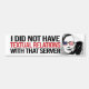 I did not have Textual Relations with that server Bumper Sticker