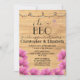 The design has rustic wood background ,string fairy lights, pink flowers, wedding engagement ring and all the texts in the template can be personalized by clicking personalize option