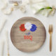 I do BBQ featuring patriotic red, white and blue florals against a rustic wood background