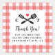 The perfect finishing touch for an I Do BBQ engagement party or rehearsal dinner favor, this sticker has the couple's monogram among grilling tools on a cheerful red picnic blanket pattern.