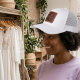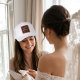 Are you part of the "I Do Crew," a team of bridesmaids supporting a bride for a wedding? This leather patch hat features the phrase "I DO CREW" with the "O" being a wedding engagement ring with a heart in it. Your bridesmaid's name appears in a script font underneath. The letters and illustration appear in the leather color against a darker background. These hats are a great way to support your bridesmaids as they help you prepare for your special nuptials. The hat shown is in white but you can choose other hat colors and combinations.