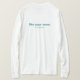 I love this shirt. I had written to the artist asking her if this picture was available on a shirt, and she wrote me back telling me where I could find the shirt. These shirts can be custom made to have a different saying. I loved this saying and went with it. The artist wrote me back later to tell me that she had seen my order go through. How's that for service? Pretty special. It's just as displayed. Perfect!