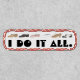 Patch design features an original marker illustration of a row of lyrical, jazz, ballet, acro, character and tap dance shoes, with I DO IT ALL in a fun font.
