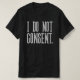 I Do Not Consent T-Shirt, unisex style for men or women. Tired of coercion and manipulation? Show your lack of consent with this funny saying quote phrase tee shirt. Wearing a face mask or health and medical freedom.