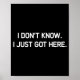 I Don't Know I Just Got Here. Funny, Jokes, Sarcas Poster
