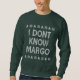 Celebrate the holidays in this funny “I Don't Know Margo Ugly Christmas Sweater” This is perfect for you! Super cute top for winter and all the Christmas and holiday festivities! Makes a great holiday gift for you and your best friend, for Christmas tree chopping or shopping too! and is available in sizes for babies, kids, and adults!