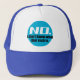 This printed trucker hat features a blue logo with the text "No. I don't know what that rock is." For those who receive too many requests to name mysterious rocks.