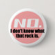 This flair button pin features a pink logo with the text "No. I don't know what that rock is." For those who receive too many requests to name mysterious rocks.