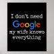 I Don't Need Google My Wife Knows Everything Funny Poster