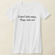 The material is a great quality that is hard to find with most tee shirts. Fabric was not see-through or thin at all, but was also very soft and comfortable. The shirt description states that it runs a little small, so I sized up one size for a perfect fit! I would definitely buy this type of tee shirt again because I love the fit and high quality fabric that I cannot find anywhere else. The printing was perfect and just as pictured. Loved the cute quote and really enjoy the tee in both the quality and design. I love quirky typography designs and funny quotes and I am extremely pleased with the overall quality and value I get at Zazzle!