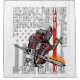 Firefighter shower curtain with red and grey armored crusader with fiery sword and Christian cross. Though I walk through the shadow of the valley of death, I fear no evil. American flag hangs in the background. Shower curtains for firefighters. Decorate you bathroom in a firefighter theme!