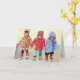 Three toddlers holding hands march through puddles--enjoying a rainy day and each other. Painted with gouache on brown paper.